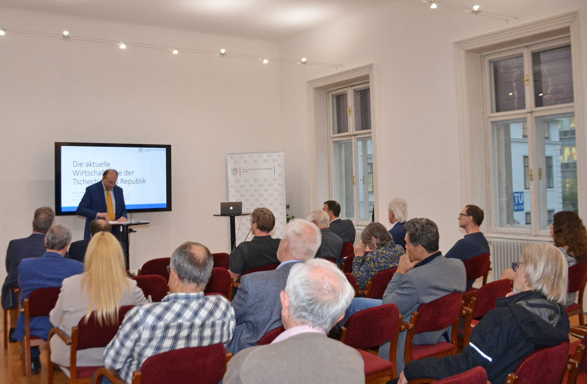 Robert Otepka, Leiter der Wirtschafts- und Handelsabteilung der Botschaft der Tschechischen Republik in Österreich, informierte über die wirtschaftliche Entwicklung Tschechiens. Für 2024 gehen die Prognosen von einem Wirtschaftswachstum von 1,4% aus, die Inflation dürfte bei 2,6% liegen. Von enormer Bedeutung ist die Autoindustrie, die sich auch in der Corona-Krise sehr widerstandsfähig zeigte. Konsumnachfrage und Export sind eine Stütze der Wirtschaft. Prioritäten für die Zukunft sind eine Stabilisierung der öffentlichen Finanzen und eine aktive Partnerschaft in NATO und EU. Im Europavergleich sind Arbeitslosenrate, Arbeitskosten und Steuern sehr niedrig. Investitionen erfolgen auch durch Ausbau der Kernenergie, die Rüstungsausgaben und durch Ausbau des Straßennetzes. In Tschechien gibt es mehr als 1.800 österreichische Unternehmen. Sie bieten rund 100.000 Beschäftigten Arbeit.