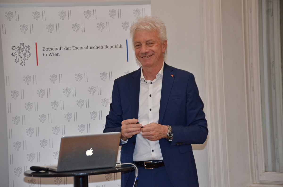 Nach der Begrüßung durch Gewerbeverein-Generalsekretär Mag. (FH) Stephan Blahut widmete sich Botschafter Dr. Jiří Šitler dem engen Verhältnis zwischen Österreich und der Tschechischen Republik. Auch wenn man sich nicht immer einig ist, wie beim Thema Kernenergie, sind die beiden befreundeten Länder gesellschaftlich und wirtschaftlich eng verflochten, zB. in der Industrie, im Tourismus, durch die enge Zusammenarbeit ihrer Regionen, die kulturelle Verbundenheit und durch die Zusammenarbeit bei Gesundheitszentren, wie in Gmünd. Österreich ist der siebtgrößte Handelspartner und fünftgrößte Exportmarkt Tschechiens. Auch die BürgerInnen der beiden Länder haben jeweils eine positive Einstellung zu den BürgerInnen des Nachbarlandes.