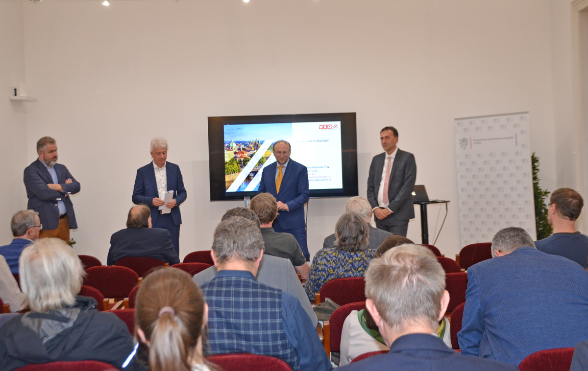 Auf großes Interesse stieß am 15. April 2024 der Informationsabend des Österreichischen Grenzlandvereines, des Österreichischen Gewerbevereines und der Botschaft der Tschechischen Republik zu Österreichs Nachbarland Tschechien. Seitens des ÖGLV waren Vizepräsident KommR Karl Richter und die beiden Vorstandsmitglieder Jutta Kellner und Mag. Gerd Böhm in den Räumlichkeiten des Österreichischen Gewerbevereines vor Ort.