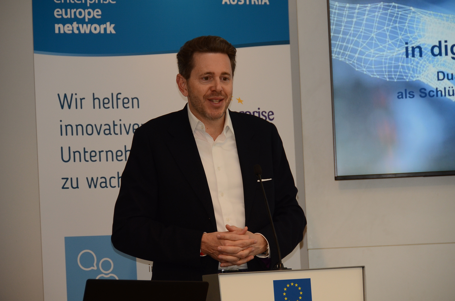 DI Jozef Vasak, wirtschaftspolitischer Berater der Vertretung der Europäischen Kommission in Österreich, wies in der Begrüßung auf die Tragweite und die Herausforderungen der Digitalisierung für alle Bereiche der Wirtschaft und der Bildung hin.